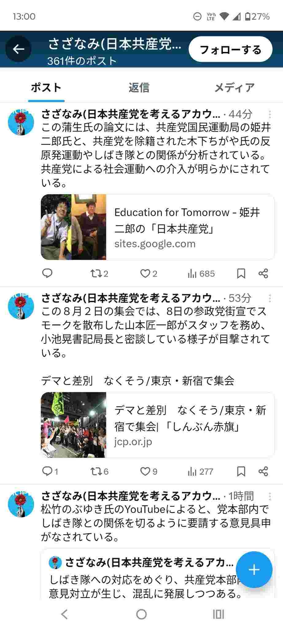 - 今回の参院選で、一番惨敗してるのが共産だからな。