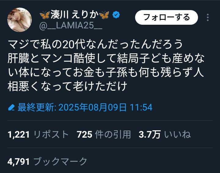 真に後悔すべきは身体売ってた時期に得た金をどう使ったかって事なのにな - 32 : 2025/08/13(水) 17:39:08.179 ID:cDd9493u0