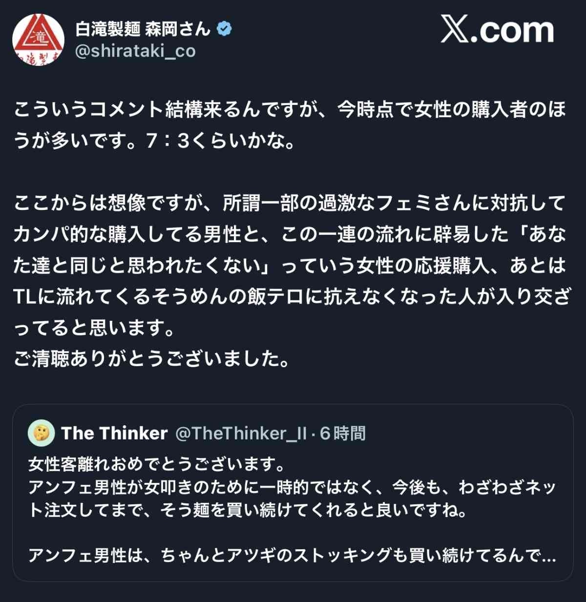 - 白滝製麺なんて聞いたことないんだけど不買してやる!なんて意気込むほどここの商品買ってんのか?