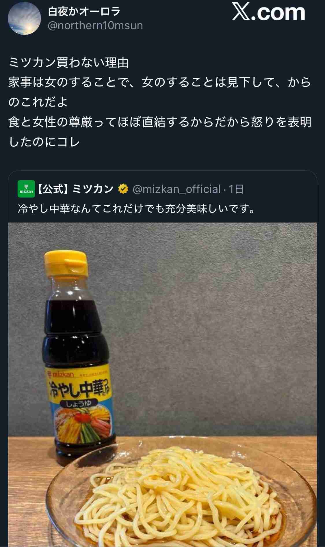 炎上に乗っかるミツカンもうんこやこの認識で何でフェミ扱いされるのか謎やわ