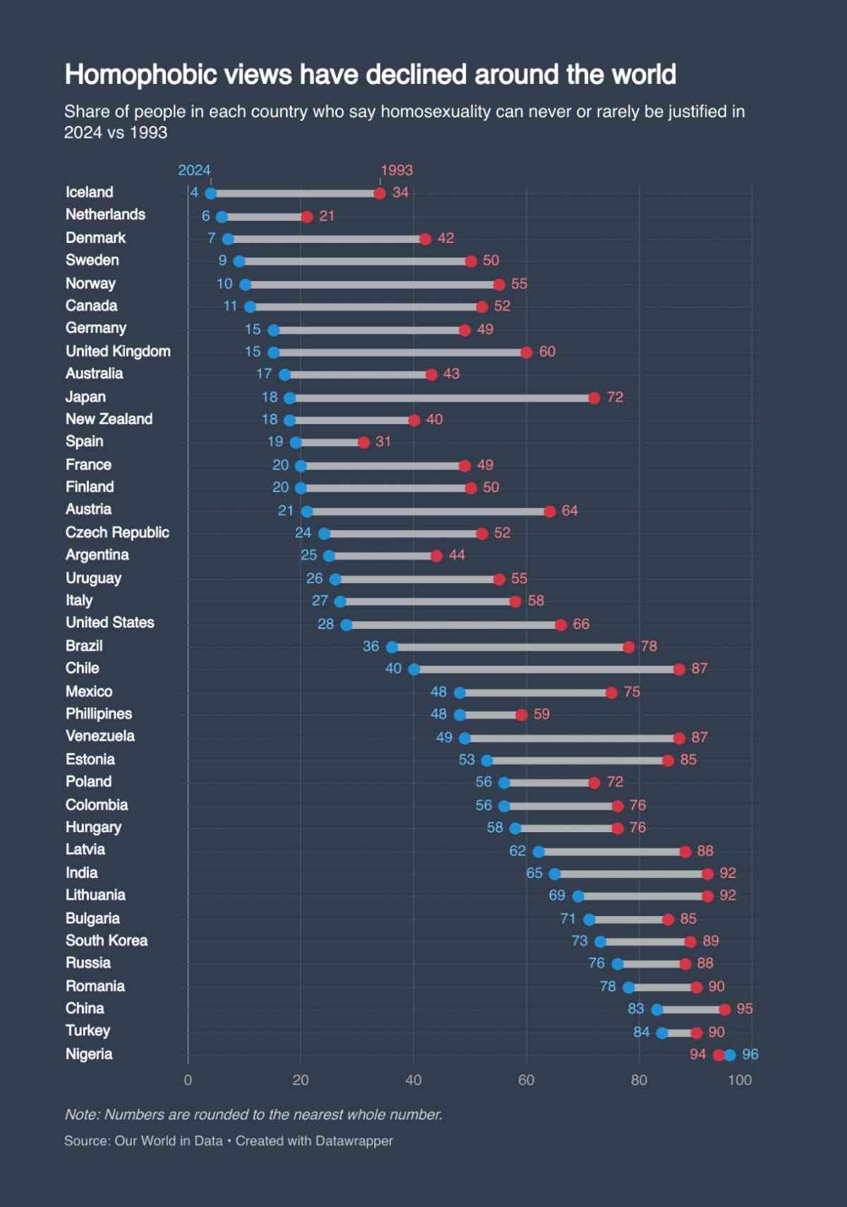 - 同性愛者にどれだけ偏見を持っているかを表したランキング