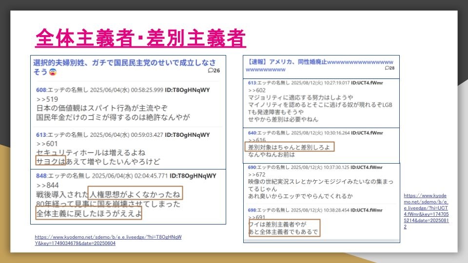 - 差別主義者・全体主義者を自称する化石みたいなネトウヨや