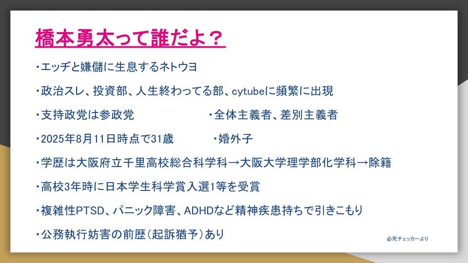 - 差別主義者ネトウヨ人権不要論者の橋本勇太くん😰