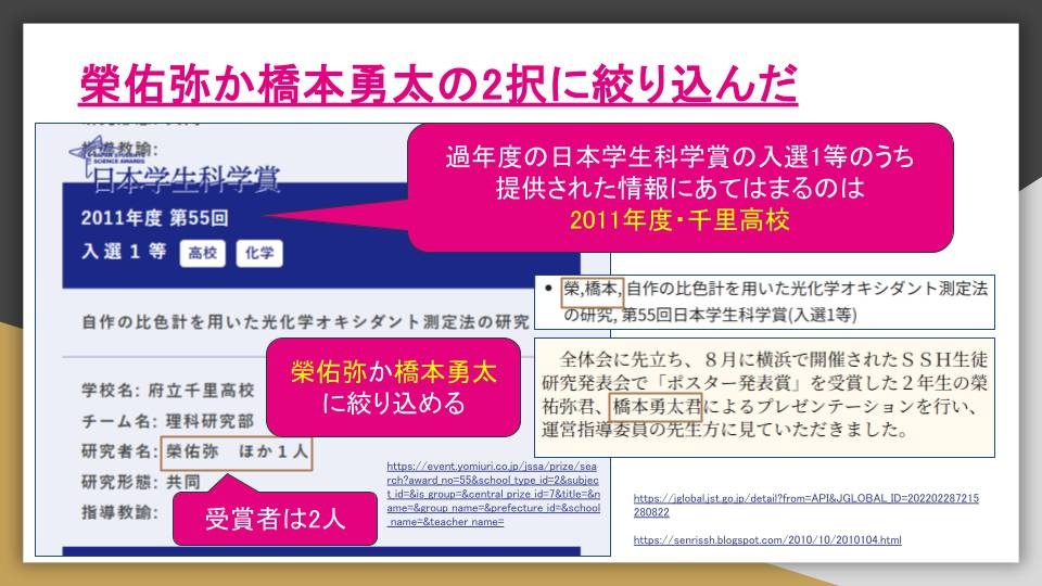 そんでこの受賞者が榮佑弥と橋本勇太やからこの時点で2択まで絞り込めた