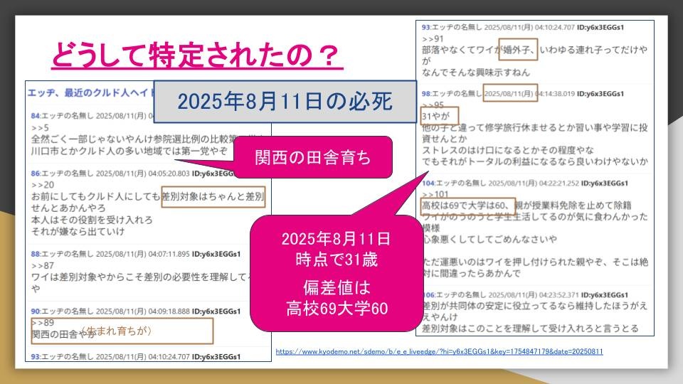ワイとか余裕で特定されそうやわ - 57 : 2025/08/18(月) 06:08:44.171 ID:i5dW8g/qU