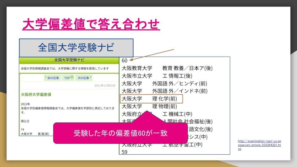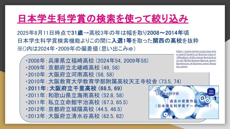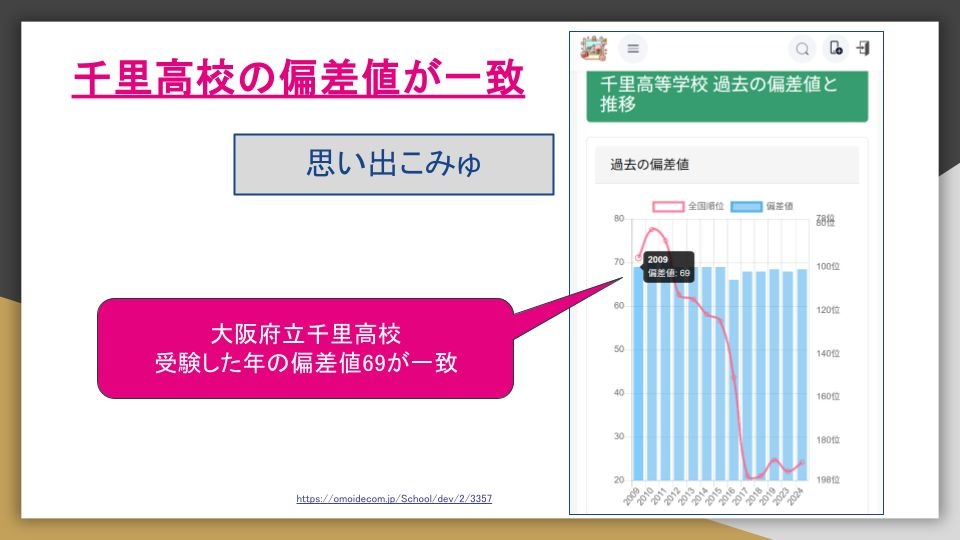 - 結果的に2011年度の大阪府立千里高校が出てきた情報とピッタリ合ってたんや