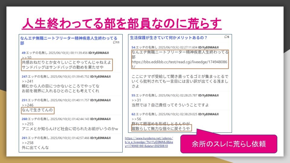 個人攻撃はそんなにしてなくねこれに粘着して特定・拡散する方が俺的にはヤバい判定や
