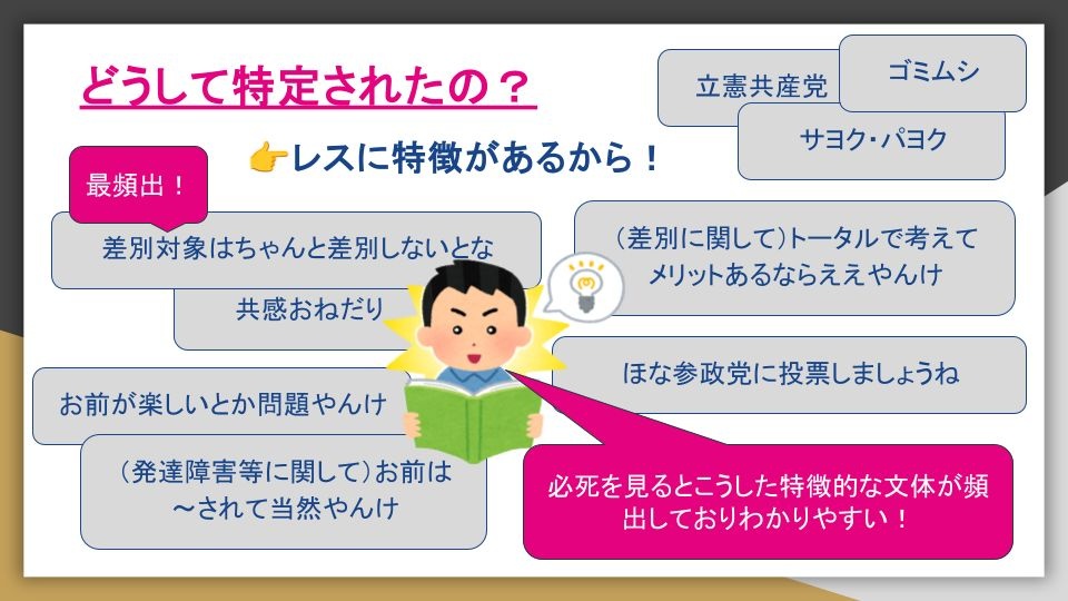 - レスの文体が独特だから特徴を学んだらすぐ見抜けるで