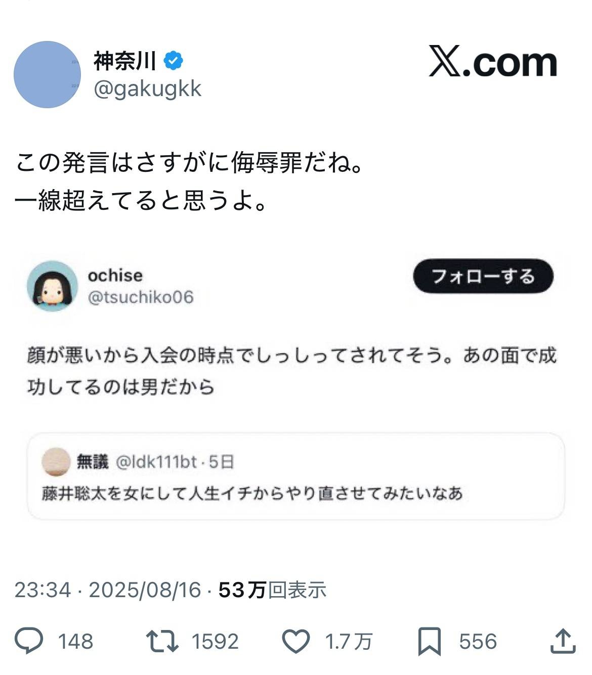 - 実力の世界やって話してるのに顔がどうとか言い出すの謎すぎる