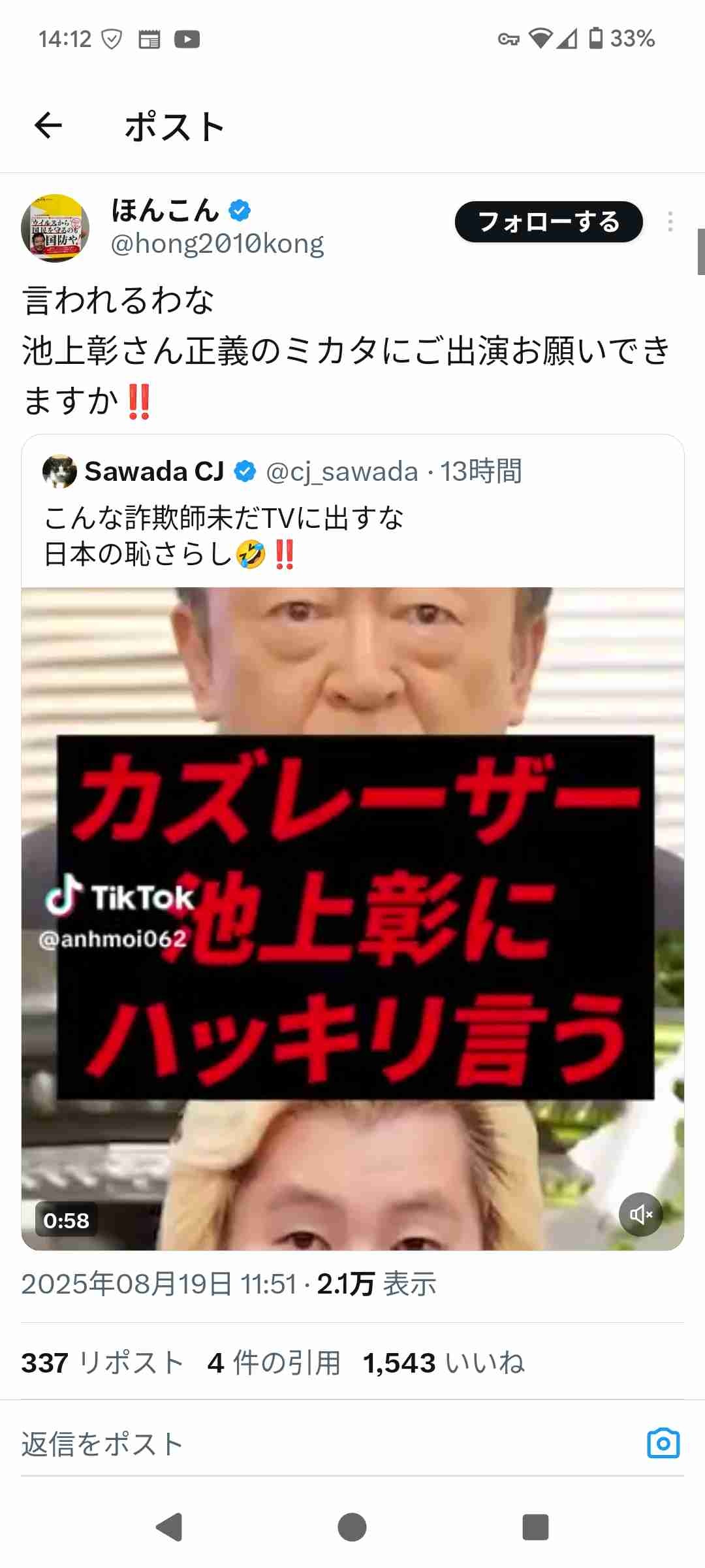 むしろ池上を貶してるが - 143 : 2025/08/19(火) 14:48:58.36 ID:Rpw5GIM90