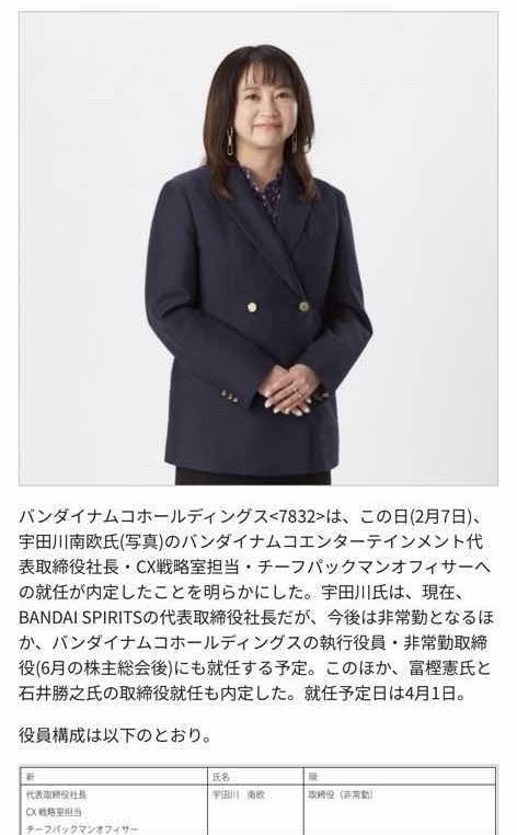 宇田川南欧氏の社長就任が内定