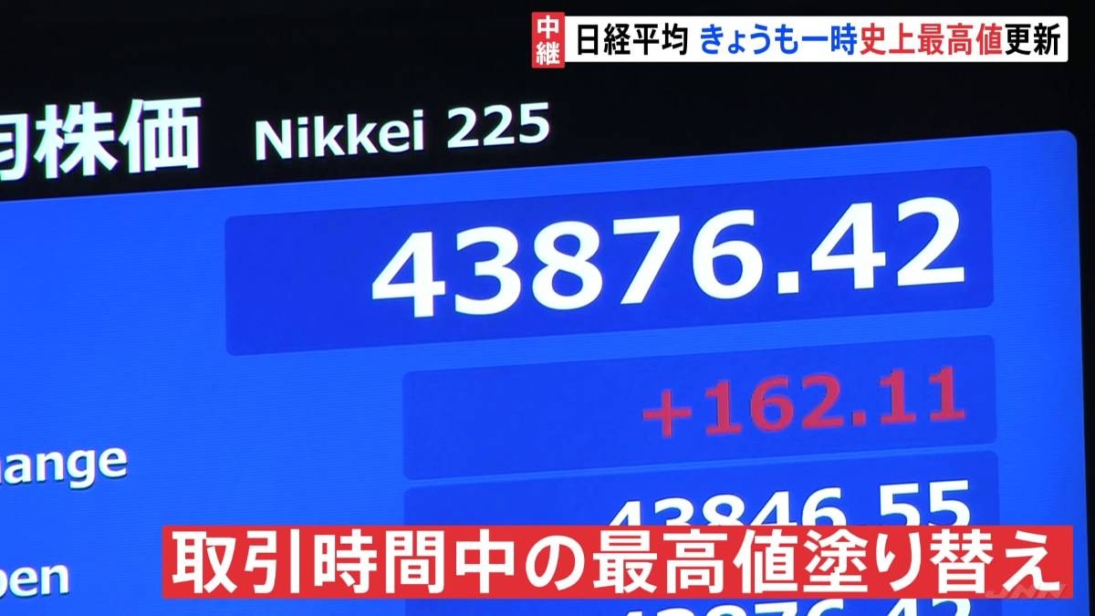 きょう(19日)の東京株式市場で日経平均株価は、取引開始直後に4万3846円をつけ、取引時間中の史上最高値を更新しました。