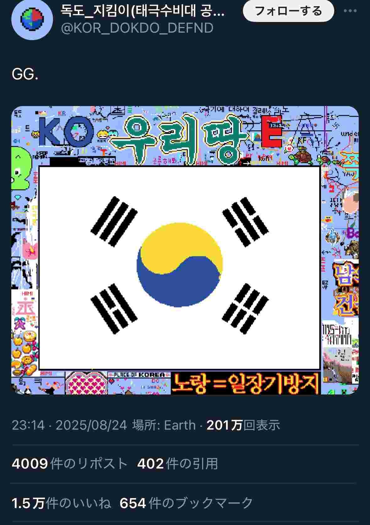 国旗の下にハングルで黄色は日本対策って書いてる - 32 : 2025/08/27(水) 11:33:54.869 ID:RbDwgJyk.