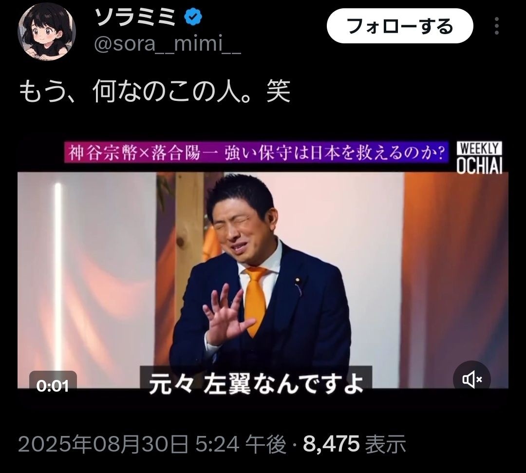 お前みたいな左派がいてたまるかw - 56 : 2025/08/30(土) 19:32:10.37 ID:+0T89oRlH