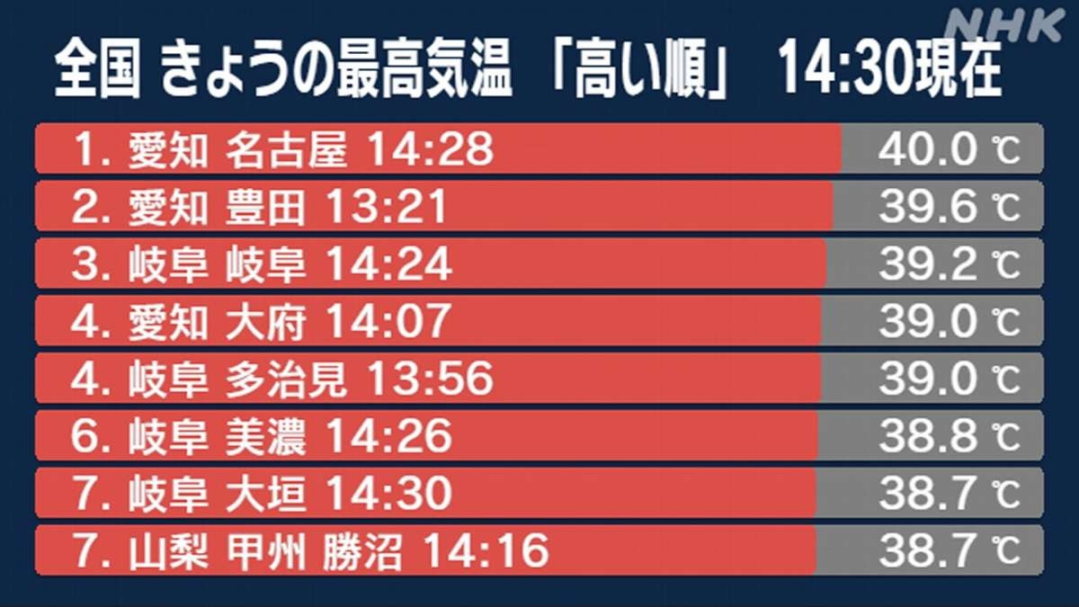 名古屋で40度 国内で40度以上ことし9日目 熱中症に厳重に警戒