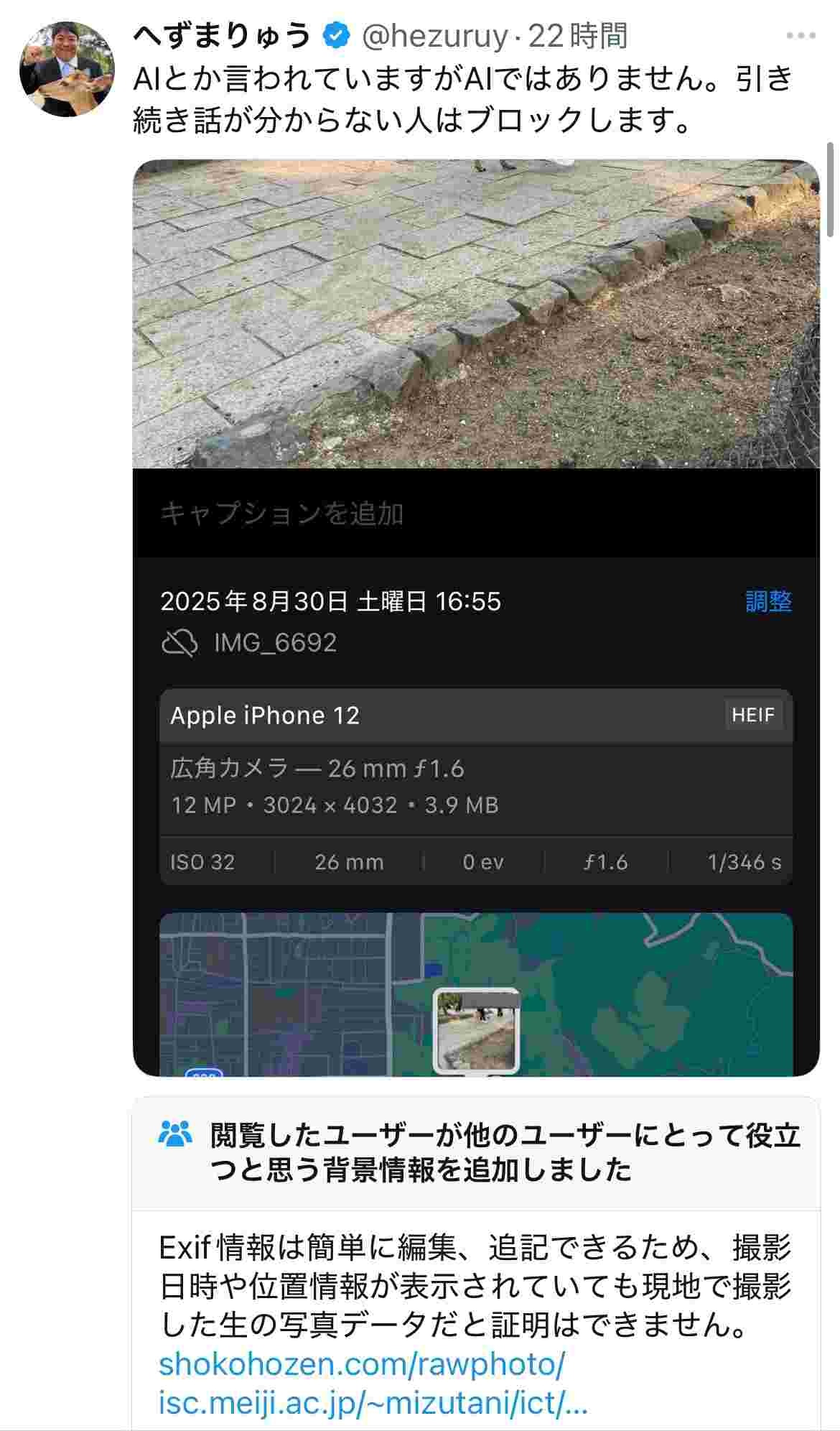 - 偽造ではない証拠をだすもコミュニティノートに論破される