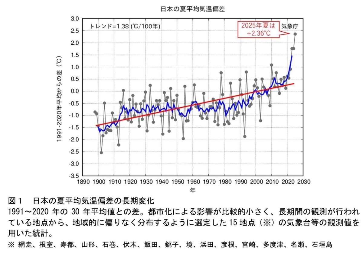 ことしの夏 平均気温は平年比2.36度高い“異常な高温” 気象庁 | NHK【NHK】この夏の日本の平均気温は平年と比べて2.36度高く、気象庁が1898年(明治31年)に統計を取り始めてから最も高くなりま…www3.nhk.or.jp - 2 : 2025/09/02(火) 12:20:18.70 ID:s3TTbQNT0