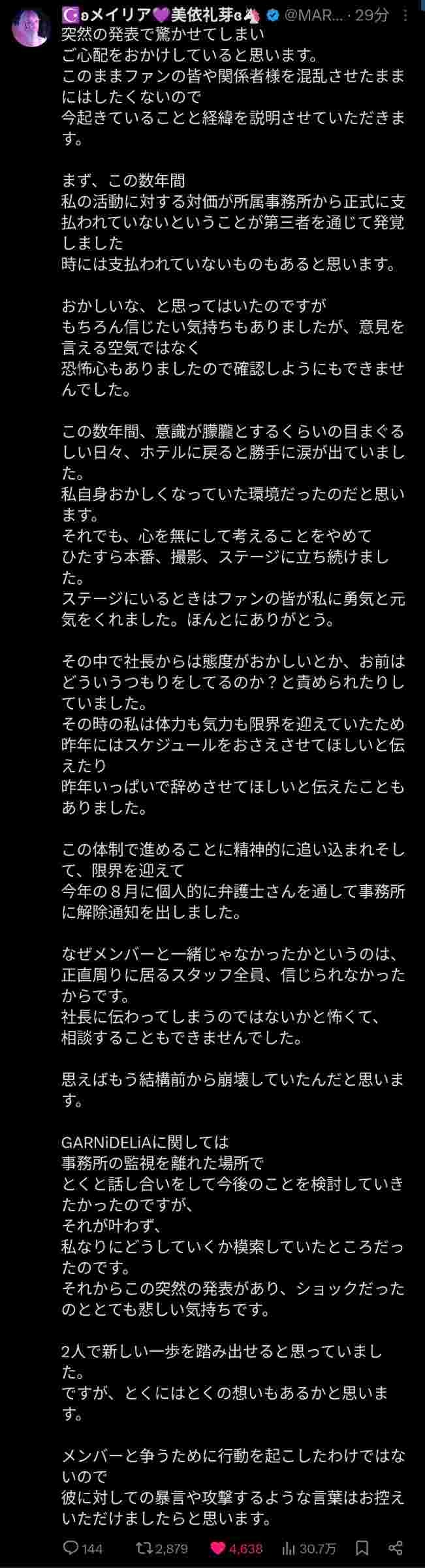 メイリアがつくった個人事務所なのにそこから移籍や別グループって意味不明だろ… - 11 : 2025/09/02(火) 17:05:19.94 ID:YSNZ1Osa0