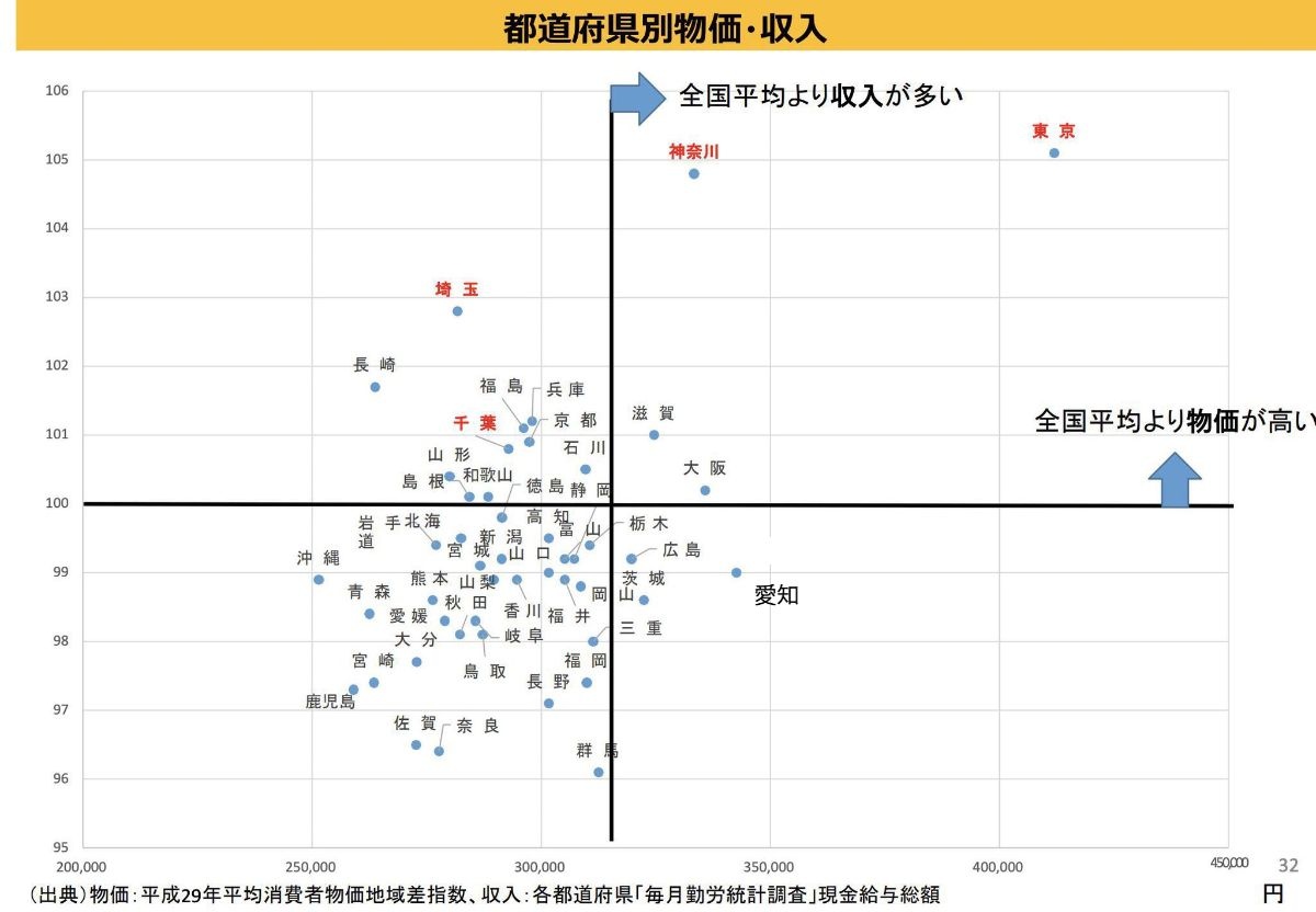 - これだと東京は収入が30%多く物価は5%高いだけなんだが
