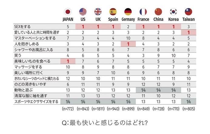 - オ●ニー順位がヨーロッパでも国によってかなり違うし文化的なバイアスが大きいんじゃないのか