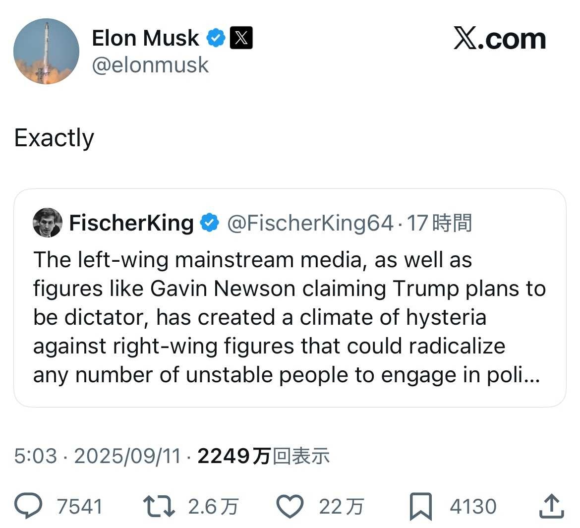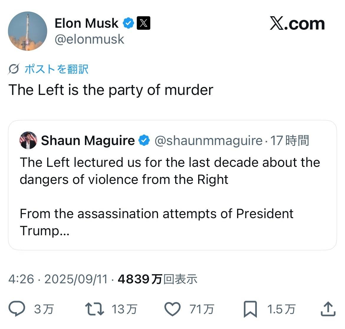 - トランプとマスクはいつ暗殺されてもおかしくないぐらい