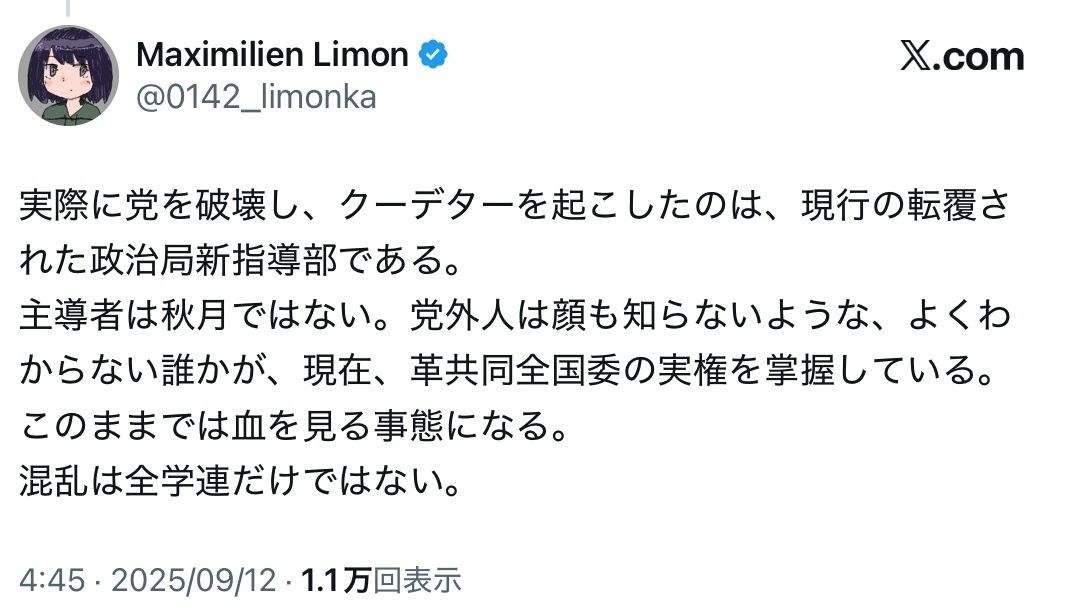 https://x.com/0142_limonka/status/1966217914480242719?s=61識者「このままでは血を見る」