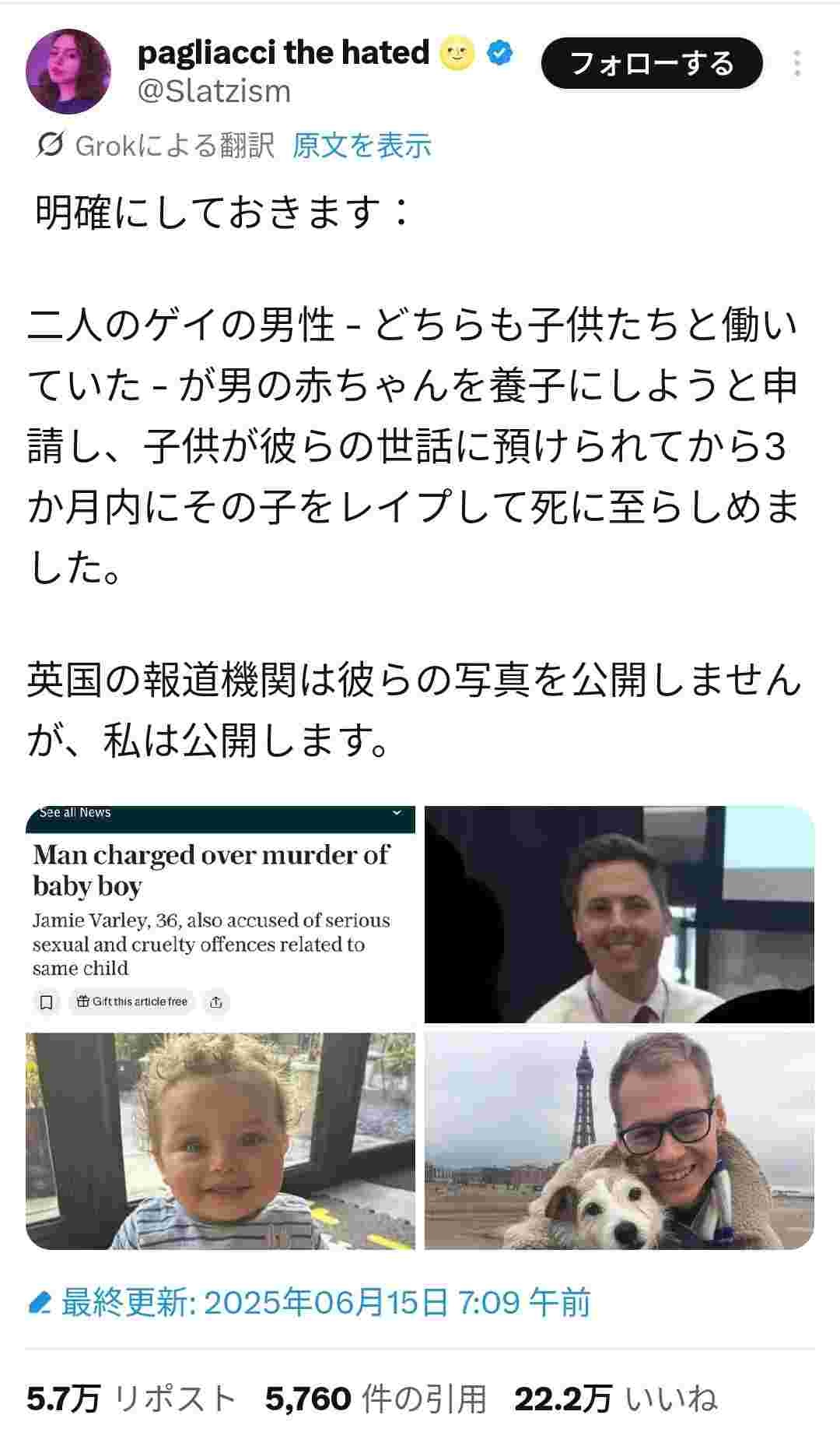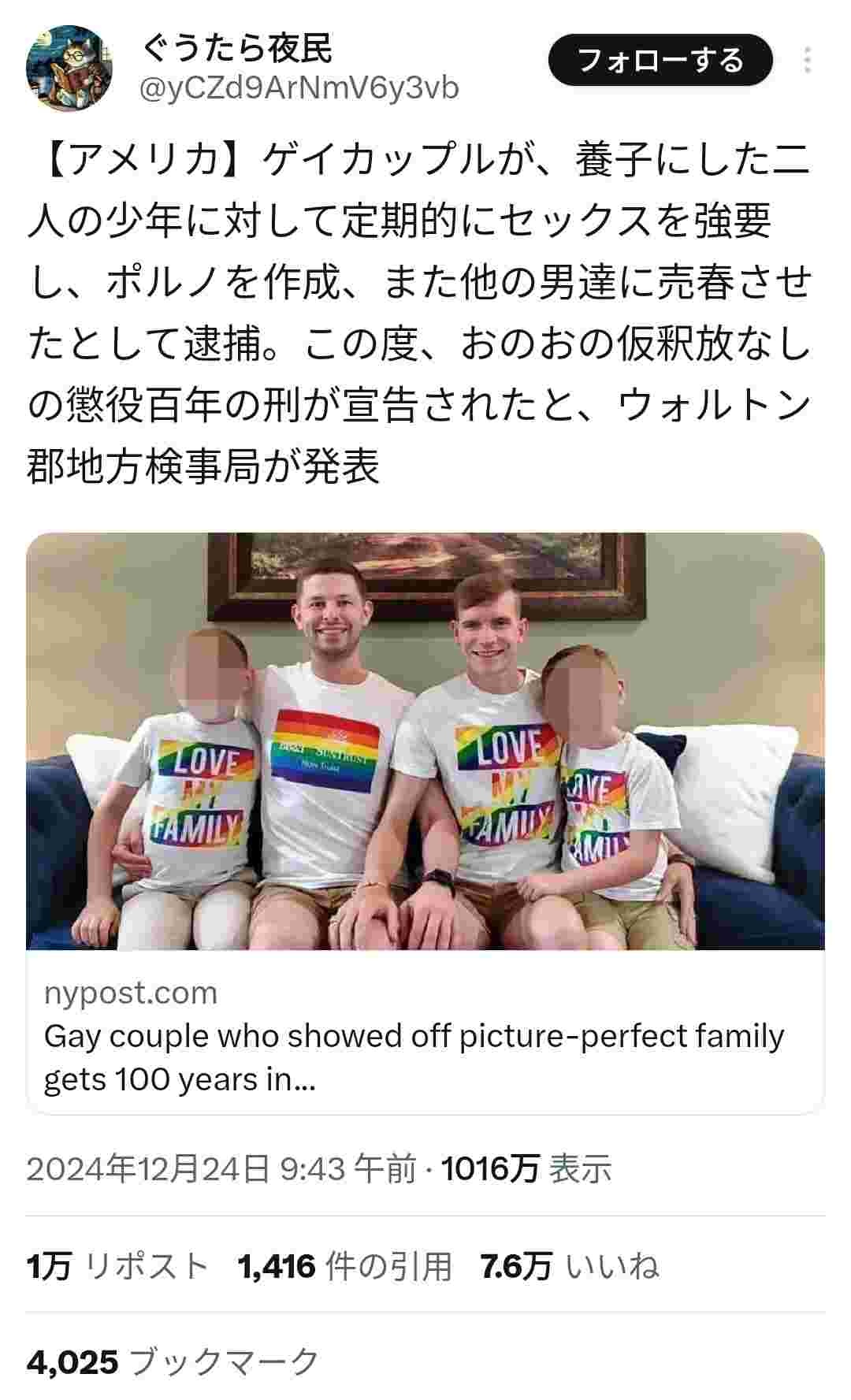 - ゲイとか関係なく男が養子に手を出す問題なのでは