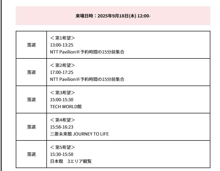- ワイなんか第5希望まで全部同じパビリオンにしたのに外れたわ😡