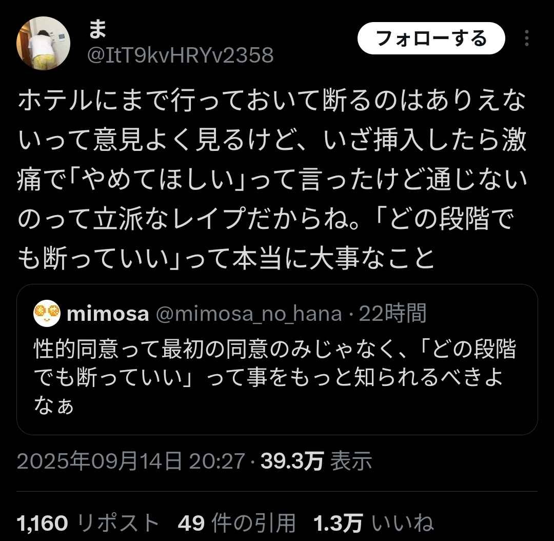 - 普通は痛いて言われたらやめるだろ